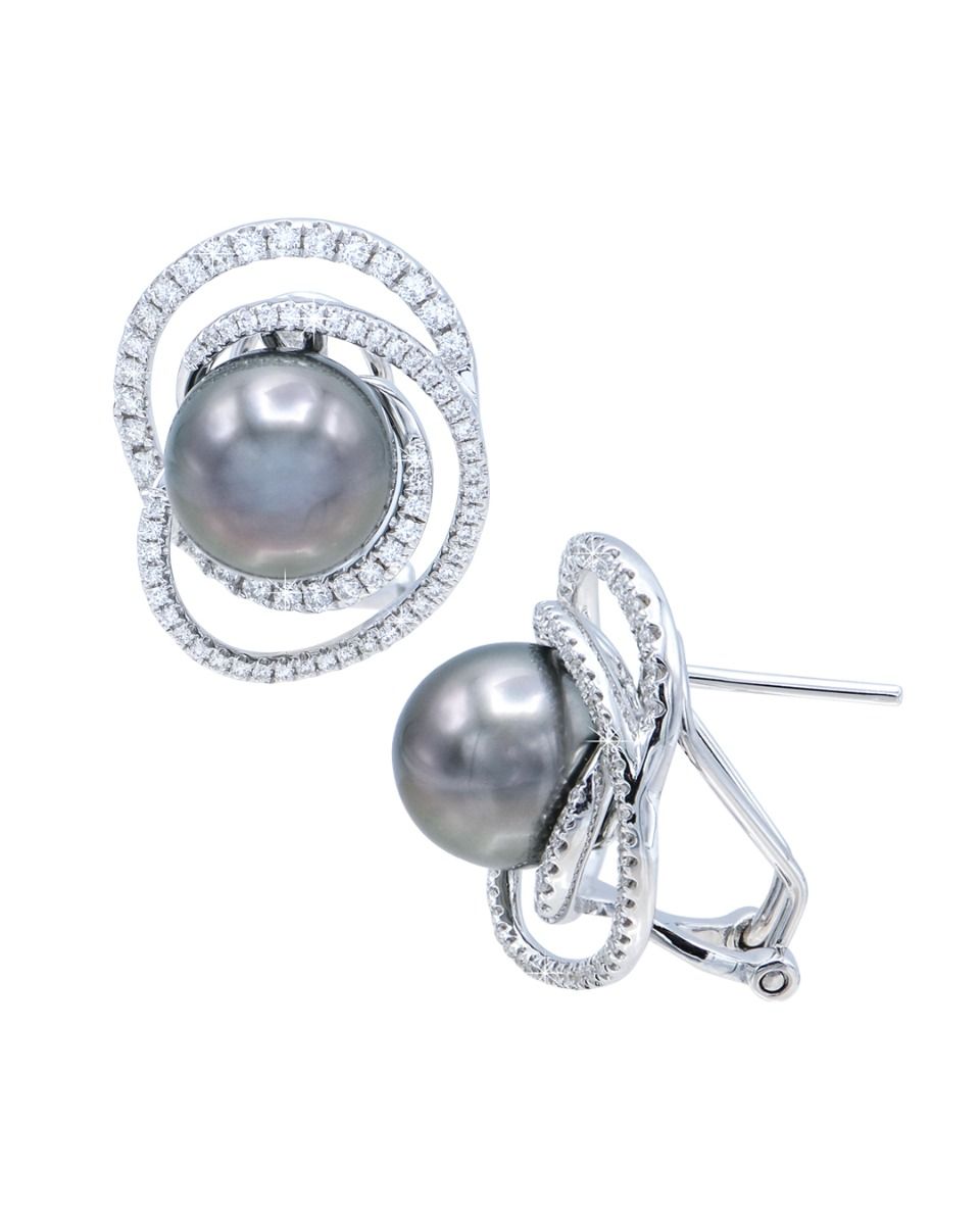 Diamond and Tahiti Pearl Earrings in 18K White Gold