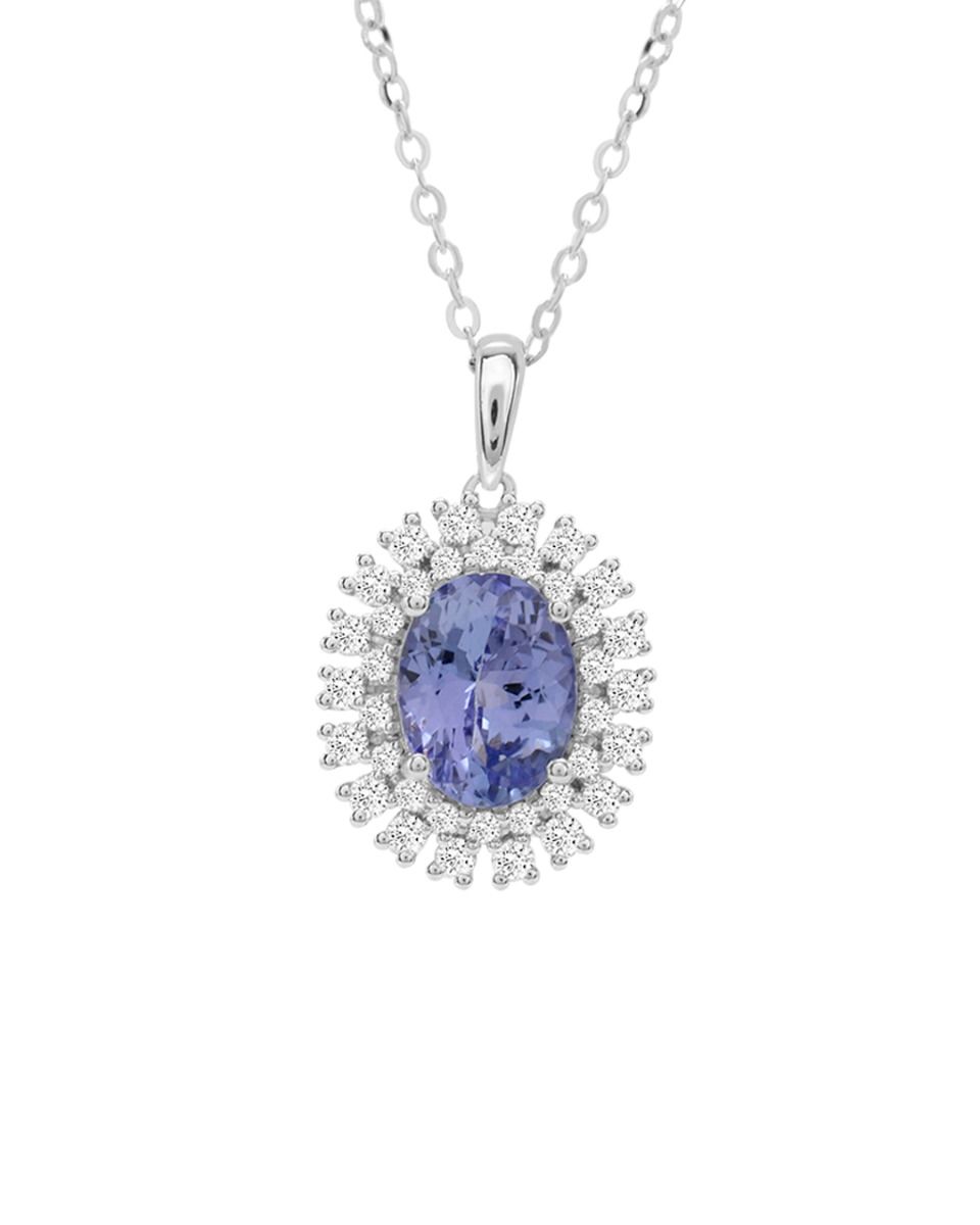 Oval Tanzanite Diamond Halo Pendant With Chain in White Gold