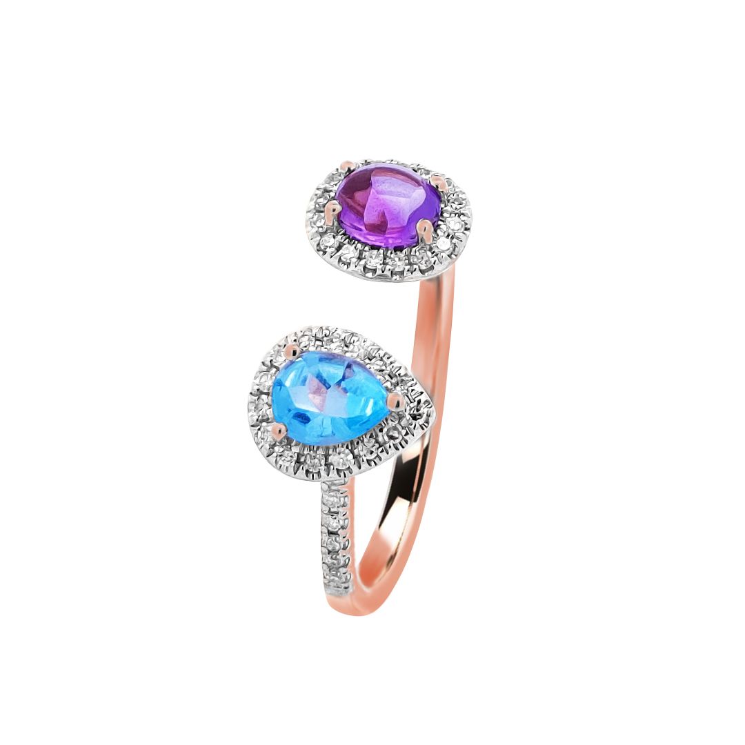 Amethyst and Topaz Dual Gemstone Diamond Ring in Rose Gold
