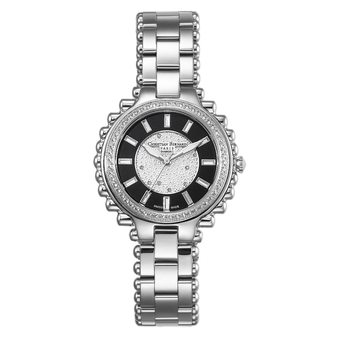 Black dial with natural diamonds Swiss Made All stainless steel band Sapphire glass 3 ATM Water Resistant