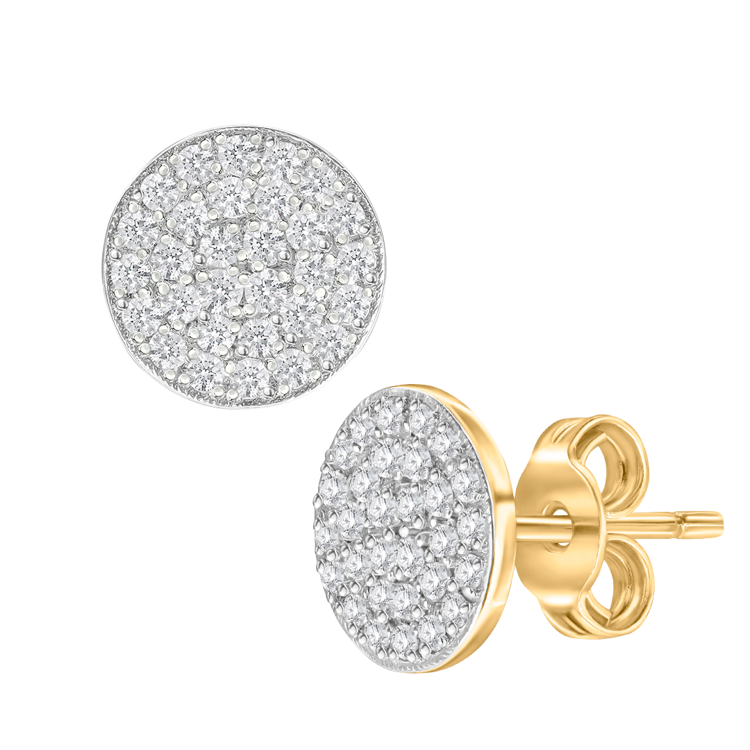 18K Gold Round Pavé Diamond Stud Earrings (0.38 carats)