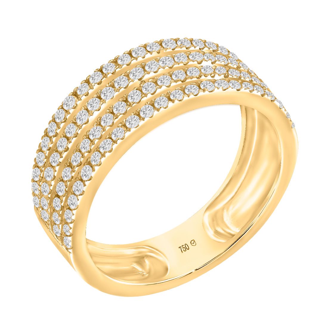 18K Yellow Gold Multi-Row Diamond Ring 0.72 CT Elegant Band