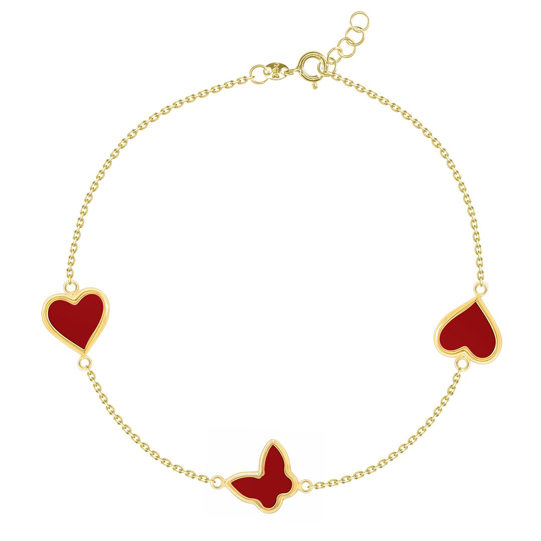 Red Heart & Butterfly 18K Gold Chain Bracelet