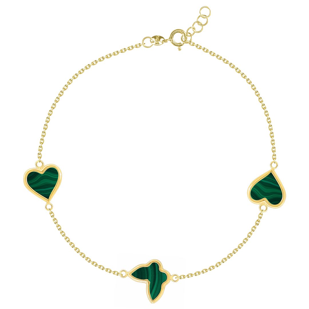 Green Heart & Butterfly 18K Gold Chain (1.49 g) Bracelet