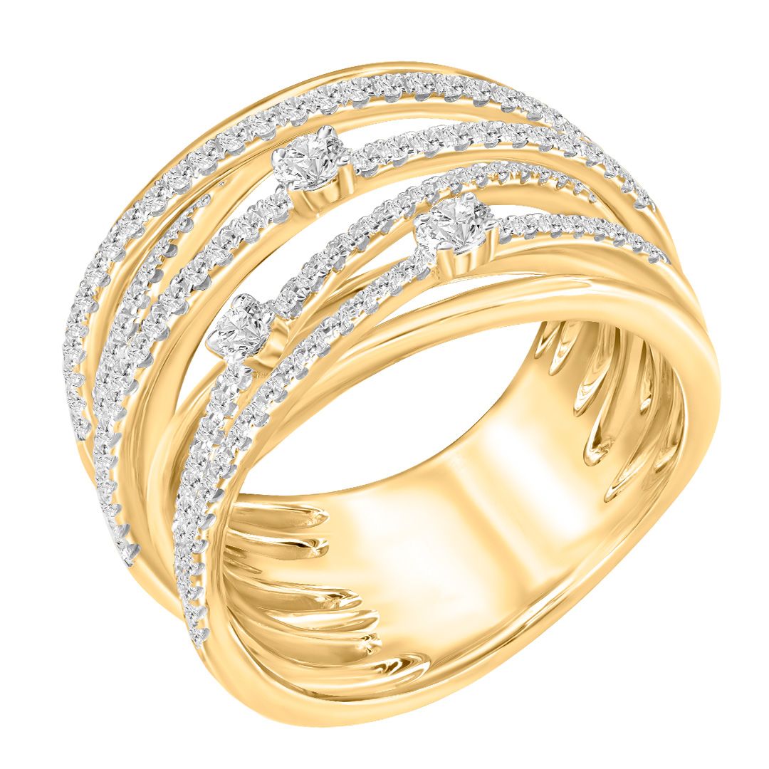 14K Yellow Gold Multi-Row Crossover Pavé Diamond Ring